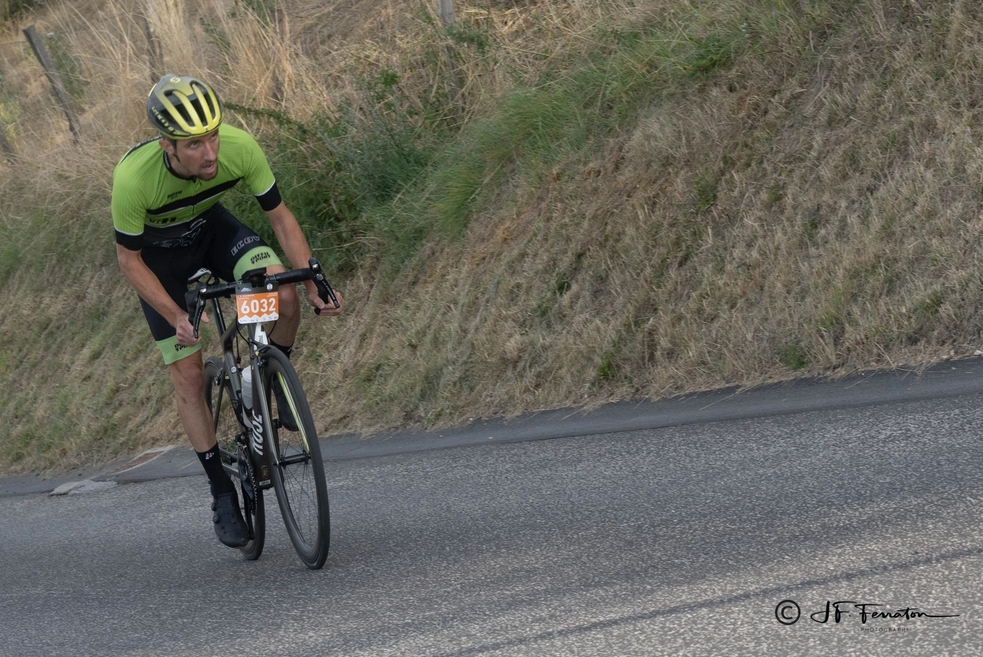 La suite sera un contre la montre en solo de 50 km. On formera quelques petits groupe. Mais toutes les montées sont plein soleil. Je me fais dépasser. Je fais même 30 m à pied dans un raidard, une première.